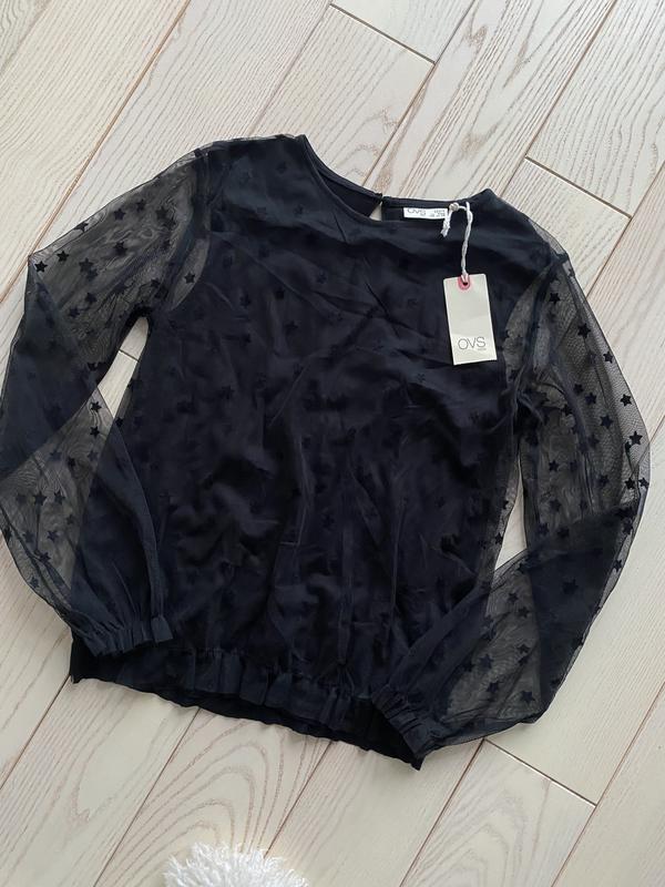 Красива чорна блузка на дівчинку 11-12 років. 152 см Рукава на резинці, знизу також на резинці. Є підкладка та запасний ґудзичок.