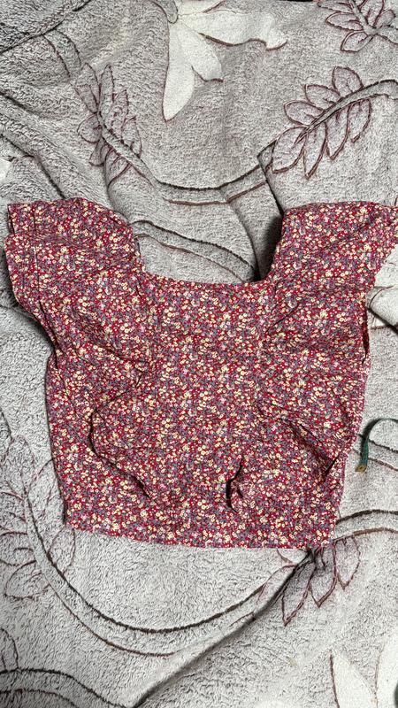 Блуза в ідеальному стані. Цікавий крій моделі. Ззаду на резинці. Заміри на фото, але за рахунок резинки може бути більшою по ширині, ніж заміри на фото.