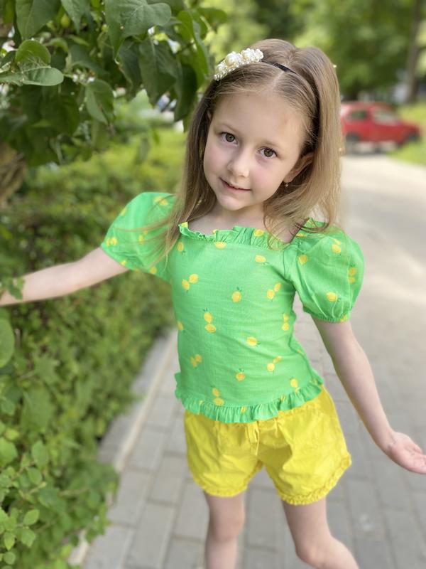 Яскрава літня блуза футболка для дівчинки з лимонами.