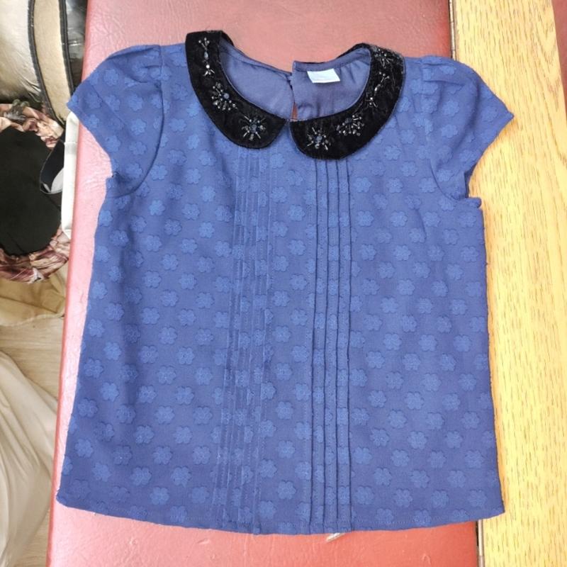 Нарядная блуза next с бархатным комврцем и узором из бисера на возраст 7 лет на рост 122 с...