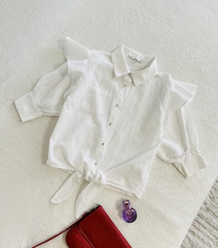 Біла блузка на чвертковий рукав З красивими гудзиками Розмір вказано 12 на 152см По грудей 38см Рукав 41-30см Довжина 43см 100% котон