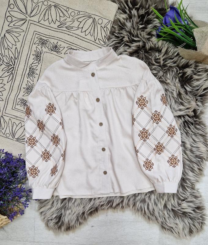 Любі клієнти! ‼️Наложка є тільки новою поштою по передоплаті 150 грн. Укр пошта по повній оплаті. Безпечної оплати немає! 🔹SMART тільки повна оплата на карту. Перед замовленням, уточніть наявність! Дякую ❤️ В наявності 🥰 Стильна сорочка вишиванка для красунь Тканина льон, гарної якості, легенька не парка, застібається на гудзики модель вільного крою колір беж Ціна 800 грн довжина/пог/рукав від горловини 122 - 44/39/51 +-2 см