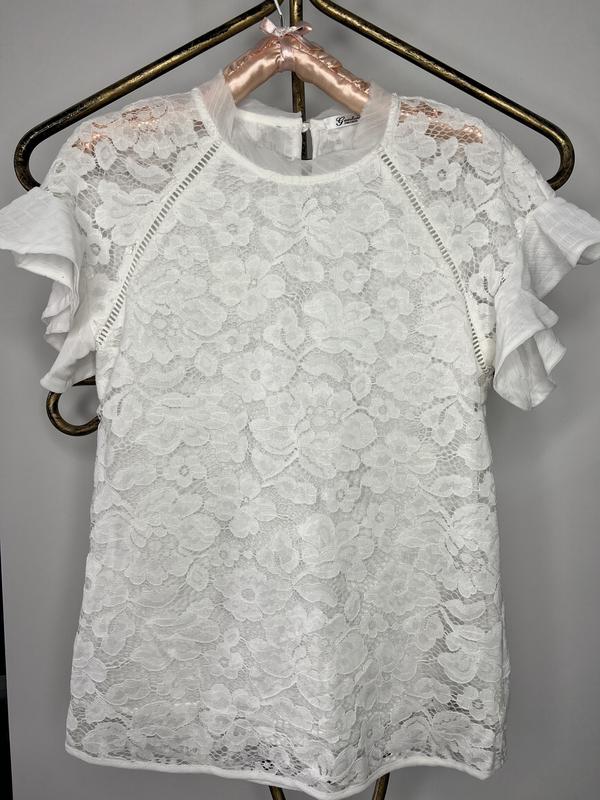 Гарна мереживна блузка молочного світлого кольору (жодного разу не вдягалась) . Підійде і до спіднички ,і до штанів , виробник Туреччина. Дуже якісна річ , за такі гроші ви не купите нову Довжина -60 см Ширина- 45 см Без нюансів До школи