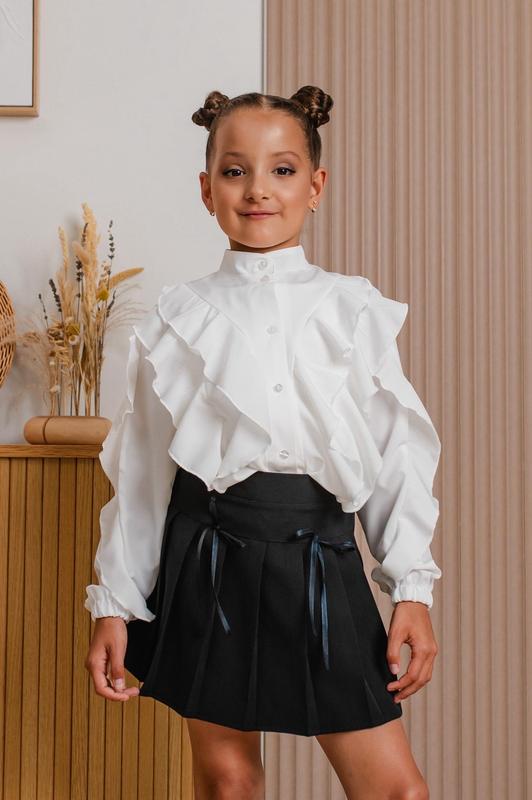 Очень стильная блузка. Размер 134: полная длина рукава 48, по внут шву 39. Длина по спинке 47. От подмышки до подмышки 41.