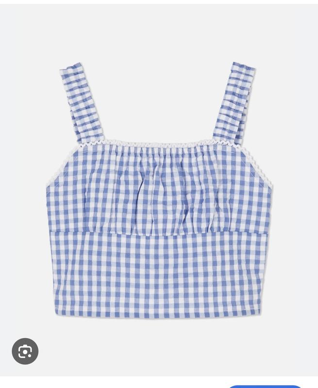 Неймовірний котоновий топ в клітинку, ніжний блактитний колір, розмір 12-13р(158см ріст), позаду зібраний на резиночку, натуральна тканина