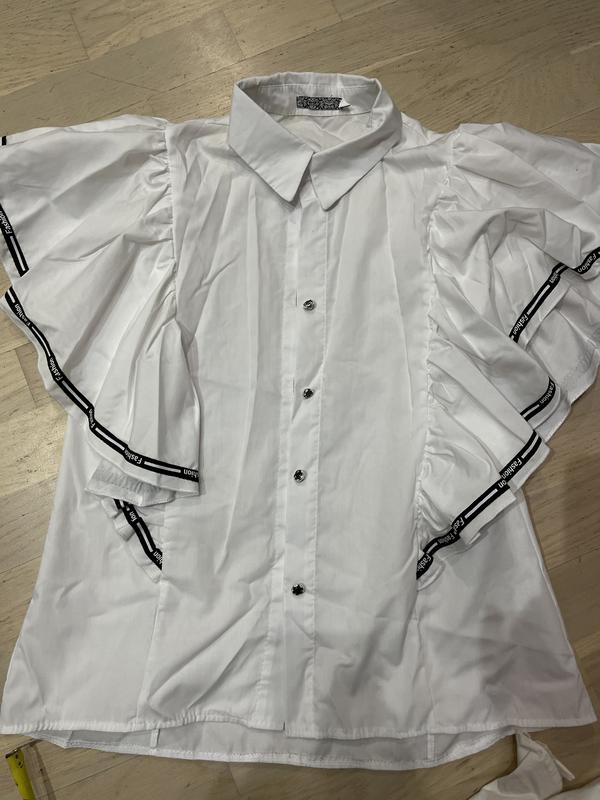 Гарна блузка на дівчинку з розкішними воланами на ріст 158 см.Довжина 57 см, ширина 45 см. Не має 2 ґудзиків.