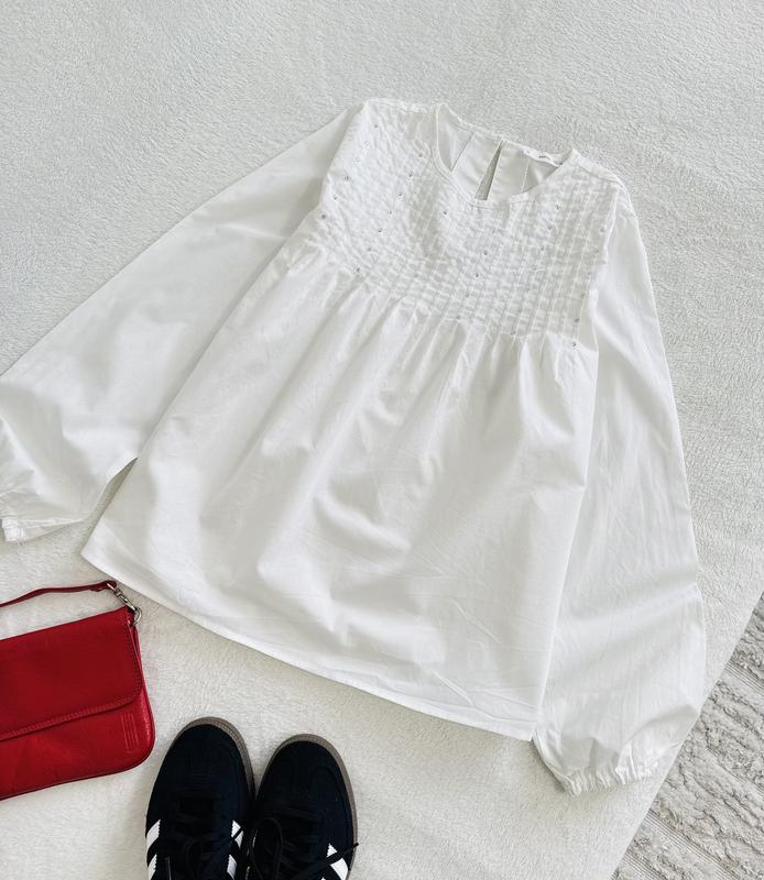 Біла базова блузка від Mango Розмір 11-12 на зріст 152 см 100% котон По грудей 44 см Рукав 65-56 см Довжина 58 см