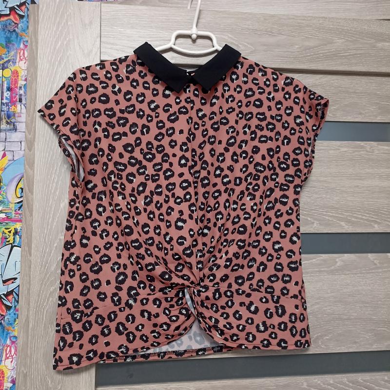 Гарна, якісна блуза на дівчинку. Трендовий принт, підійде на любу подію. Фірма Kiabi. Позаду застібається на гудзик. Зріст 152-158.