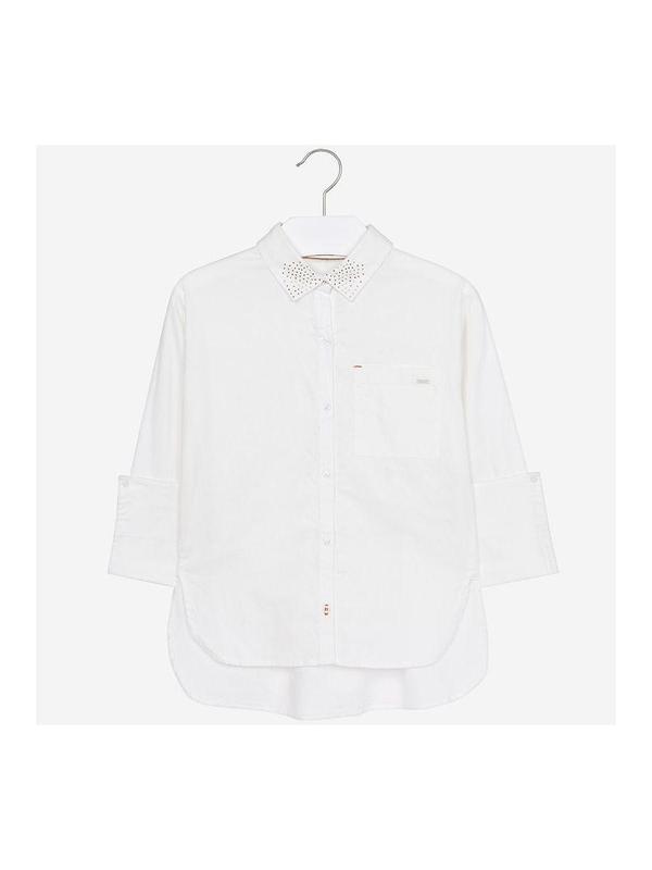 Сорочка для дівчинки Mayoral білого кольору, комір покритий стразами. 100% бавовна