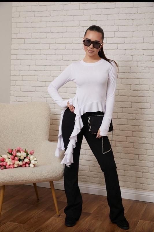 через кнопку купити тільки повна оплата!! База, що перетворюється на розкішний максимум✨ Лонгслів, який створює настрій усього образу 🤍 Асиметричний крій та хвилястий низ додають легкості, динаміки та витонченості. Подовжені рукави з отвором під пальчик підкреслюють сучасний стиль і комфорт. Ідеально поєднується з брюками, спідницями або джинсами - від базового до wow-образу 🔥 ▪️ Тканина: структурний трикотаж мікродайвінг ▪️ Приємний до тіла та добре тримає форму р.140-1шт р.146-1шт р.152-1шт р.158-1шт р.164-1шт ЗАМІРИ ⤵ +/- 1-2см!!! р.140- довжина від плеча 36см/ рукав від печового шва 50см/ ПОГ 29см (ТЯГНЕТЬСЯ) р.146- довжина від плеча 39см/ рукав від печового шва 54см/ ПОГ 32см (ТЯГНЕТЬСЯ) р.152- довжина від плеча 42см/ рукав від печового шва 56см/ ПОГ 32см (ТЯГНЕТЬСЯ) р.158- довжина від плеча 44см/ рукав від печового шва 59см/ ПОГ 34см (ТЯГНЕТЬСЯ) р.164- довжина від плеча 47см/ рукав від печового шва 62см/ ПОГ 34см (ТЯГНЕТЬСЯ) Д-арт: 1928