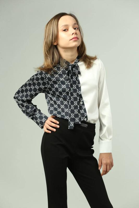 Блузка "Бренд" чорно-біла НОВА ЦІНА 580 грн тканина: шовк Армані Бездоганна якість! ВИМІРИ: р.158 довжина/рукав від плеча/пог 62/58/46