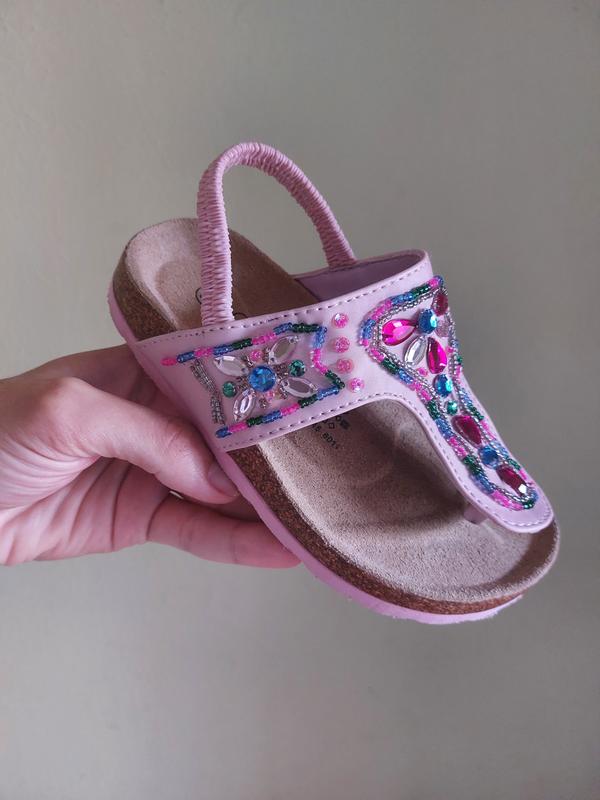 У новому стані,розмір 27,по устілці до загину 16см,пробкова підошва,верх текстиль,прикрашений намистинками,устілка шкіра,американський бренд Cup Cake Couture