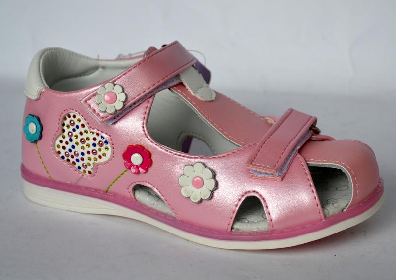 Босоніжки для дівчаток ТОМ. М. Матеріал зовнішній: натуральна шкіра + штучна шкіра Устілка шкіряна із супінатором. Є липучка на носку, яка дає змогу відрегулювати обсяг на будь-яку повноту ніжки.Продаються в індивідуальній коробочці 30р. - стелька 19,5 см 31р. - устілка 20,2 см