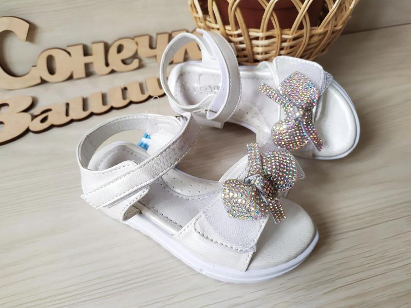 стильні білосніжні босоніжки верх екошкіра устілка шкіряна є супінатор застібка на 2 липучки легесенькі 26р-16.5см-1шт допустимо+-2мм код 604