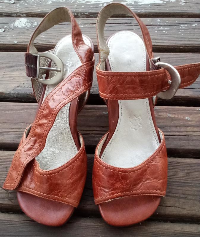 Шкіряні босоніжки німецького бренду Marc. Босоніжки м'які, легкі. Підбори зручні, висота приблизно 3см.. Довжина устілки 23 см.. На вузьку ніжку з низьким підйомом.