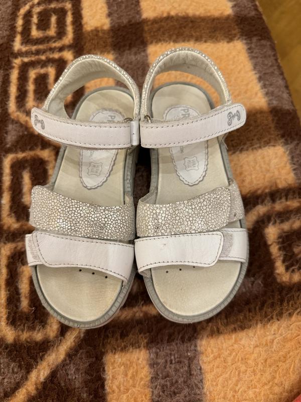 Шкіряні блискучі босоніжки, в гарному стані, після однієї дитини. Взували на свята, не на кожен день. Довжина устілки-18,5 см.(30 розмір).