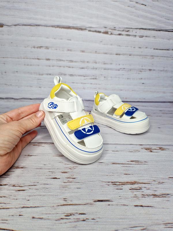 Босоніжки унісекс Tom. Код товару: 0694D Сезон: літо Колір: білий Матеріал внутрішній: шкіряна устілка з супінатором, що дихає. Матеріал зовнішній: якісна штучна шкіра Застібка: надійна застібка допомагає відрегулювати босоніжки на ніжці. Зручні для щоденних прогулянок, добре фіксують ногу, невагоми. " Розміри з 21 по 26 по устілці від краю до краю повністю: 21р. по устілці 13,5 см (в) 23р. по устілці 15,0 см 23р. по устілці 15,0 см 24 р. по устілці 15,5 см 24 р. по устілці 15,5 см 25р. по устілці 16,5 см 26р. по устілці 17,0 см