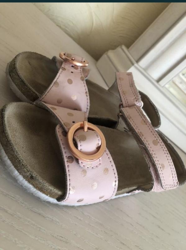 Дуже гарний стан, замовлені з офіційного сайту next. Регулюється ширина, що актуально для широкої стопи. Ніжно-рожевий колір, сподіваюсь фото передають це. Липучка функціонує ідеально. Готові до оформлення.