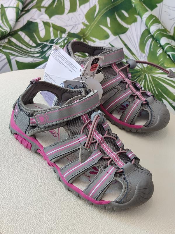 Босоніжки для дівчаток Натуральні матеріали Верх - шкіра + текстиль Устілка - шкіряна На липучці Підошва гумова , гнучка. регулюється Дуже комфортна модель. Розміри: 31 р - 20 см по устілки ( фото 5-7) 32р - 21 см по устілки ( фото 1-4)