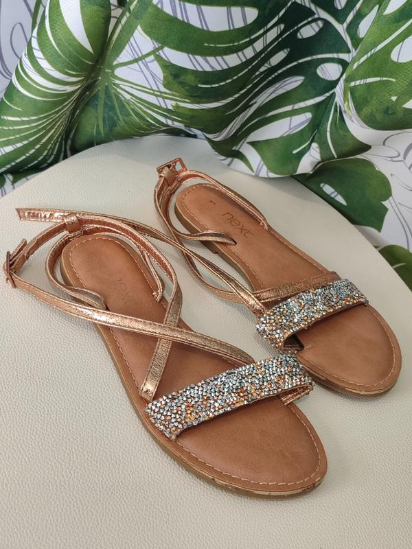Стильні босоніжки Next 30/31 розмір орієнтуйтесь по заміру . 19,5 см по устілки На тонку ніжку . Мабуть дуже м'якесеньку устілку .