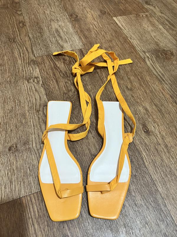 Босоніжки на зав’язках . Довжина устілки 26-26,5 Стан новий. Довжина зав’язок приблизно 60 см(замірвід середини на фото є). Розмір вказано US 10 EUR 41 UK8