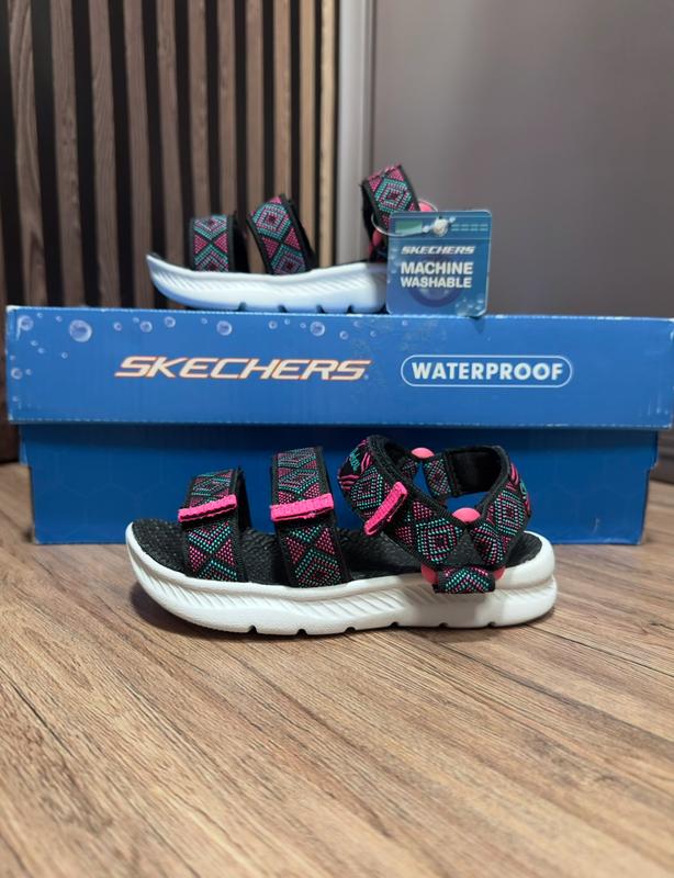 Нові оригінальні дитячі сандалі Skechers C-flex 2.0 Bohemian Beauty В наявності 26 розмір, по бірці 25, фактична довжина устілки 16,5 см, підходять на ніжку 15,5 см. Сандалі мають яскравий і барвистий дизайн, який сподобається дітям. Верх виконаний з тканини, який забезпечує хорошу вентиляцію. Сандалі мають декілька ремінців з липучками для регулювання посадки. Підошва виготовлена з пінополіуретану, який забезпечує легкість і комфорт.