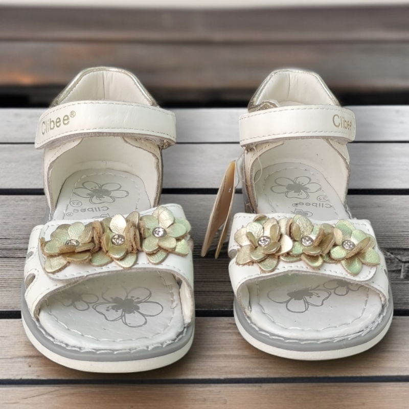 Дитячі шкіряні білі молочні босоніжки сандалії для дівчинки з п'ятою (нові уцінки)