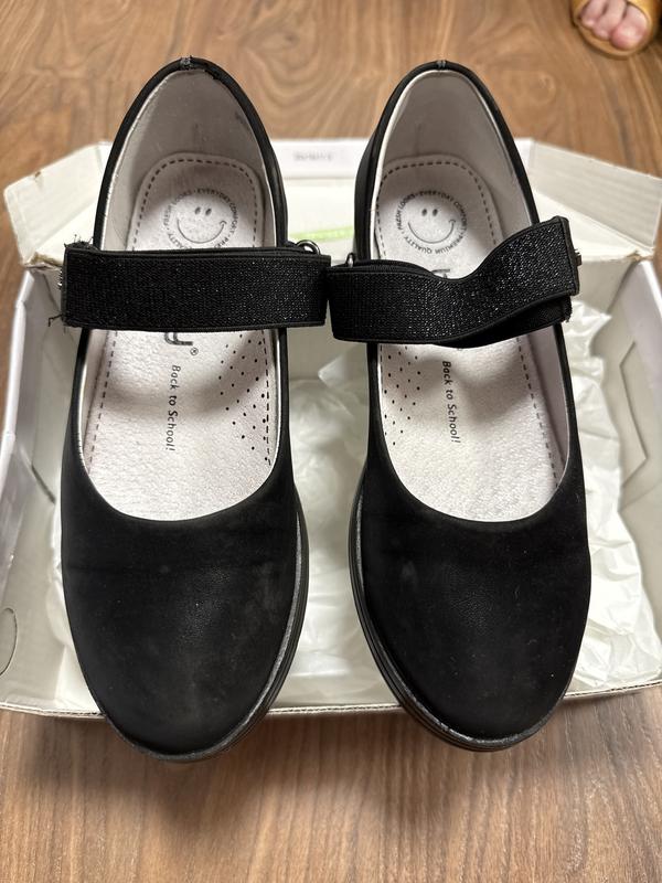 Дуже гарні балетки. Тверда підошва, гарний, якісний матеріал! Підійде під шкільну форму або для свята. Легко миється вологою серветкою! Ніде не розорвані, не відклеїні.