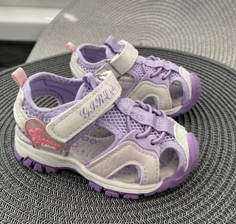Босоніжки для дівчинки з закритим носиком Верх - комбінація замінника шкіри + текстиль Шкіряна устілка з супінатором Заміри від краю до краю устілки Остання пара! 24 - 15,5 см