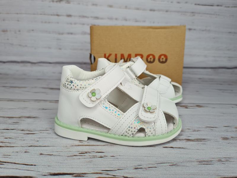 СКИНУ ВІДЕО ЗА ЗАПИТОМ Босоніжки для дівчаток Kimboo Сезон: літо Колір: білий Матеріал внутрішній: шкіра, ортопедична устілка з супінатором, підкладка шкіра Матеріал зовнішній: штучна шкіра Застібка: дві липучки допомагають регулювати підйом, підійдуть на будь-яку ніжку. Є каблук Томаса Зручні для щоденних прогулянок, добре фіксують ногу, щільний задник. Босоніжки легкі. Заміри по устілці від краю до краю повністю: 23р. по устілці 14,0 см 23р. по устілці 14,0 см 24р. по устілці 15,0 см