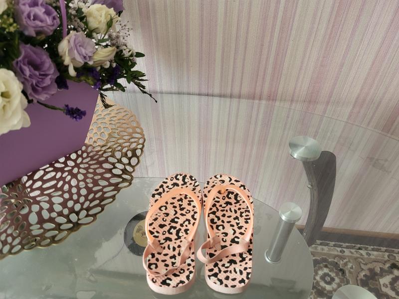 Сланці/вьєтнамки на резинці сзаду, у гарному стані, рожеві з леопардовим принтом, 17.5 см