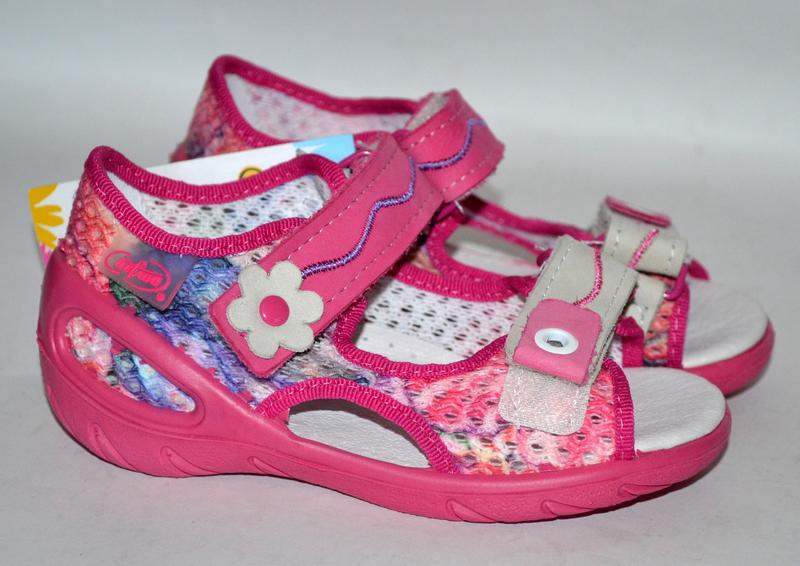 Босоніжки "Befado" з підошвою flex system і фіксованою п'ятою. Виробник — Польща, "Befado". Легкі та дуже зручні для спекотного літа! Зручна застібка на 2 липучки. Підходять на будь-який підйом і будь-яку повноту ніжки. Добротна підошва із системою Flex. Щільна рифлена підошва виготовлена методом трикомпонентного лиття (еластична, антипрокольна, неметалева прокладка "Flex-system" у підошві). Верх — текстиль. Устілка та липучки (липучка в деяких моделях шкіра, у деяких текстиль) — натуральна шкіра. Жорсткий закаблук. Заміри устілки 26 - 17,5 см Дитяче взуття Befado виготовляється відповідно до вимог та рекомендацій фахівців-ортопедів із Інституту взуттєвої промисловості в Лодзі, Краківського відділення, які впродовж багатьох років підтверджують якість продукції сертифікатом "Zdrowa stopa". Це гарантує, що дитяче взуття Befado забезпечує правильний розвиток ноги дитини. Компанія віддає перевагу натуральним зносостійким тканинам, легким і гнучким підошвам. У взутті Befado ніжки не пітніють, тому її можна використовувати як змінне взуття — у дитячому садку, як спортивну — на заняттях фізкультури в школі, як повсякденну — стилі та колірна гама Befado дають можливість підібрати пару до будь-якого вбрання.