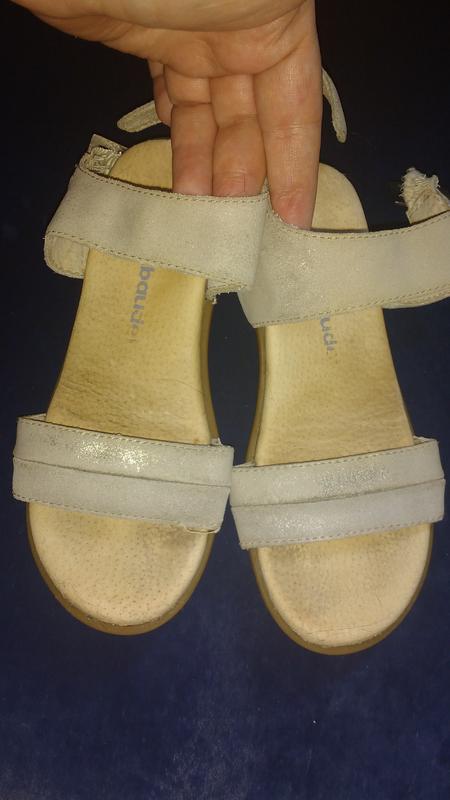 Шкіряні босоніжки Vertbaudet для дівчинки 30размер, 19 см по устілці.. Устілка шкіряна. На фото3 нюанс - розтягнуті резиночки, якими кріпляться пряжки до ремінцями. Але на функціональність цей нюанс не впливає. На одному босоніжці передня частина устілки трохи відшарувалася від підошви, але можна навіть не підклеювати, тримається добре. Відповім на всі Ваші запитання. Додаткові фотографії за запитом. Ціна 60грн.
