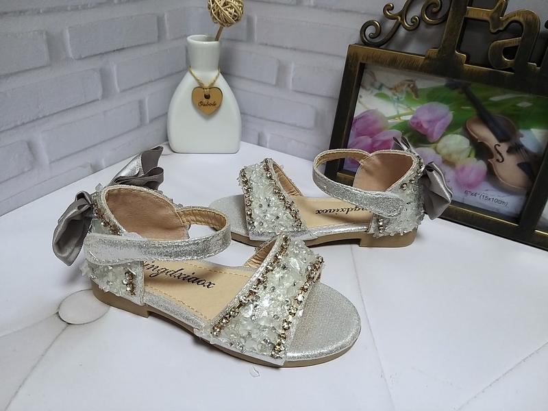 Красиві нарядні босоніжки Застібка липучка р. 21-13.5 см-1 п р. 22-14 см - 1 п р. 23-14.5 см-1 п р. 24-15 см-1 п р. 25-15.5 см-1 п 15# устілка в см виміряно повністю Не забувайте 0.7 см відступати від краю