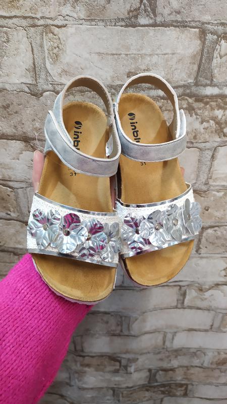 Продам босоножки на девочку фирмы Inblu. белые с серебристыми перламутром. Стелька кожа, верх мягкая качественная эко-кожа. Легкая ортопедическая подошва. Размеры в наличии: 29 р - 17.5 см 31 р - 18.5 см