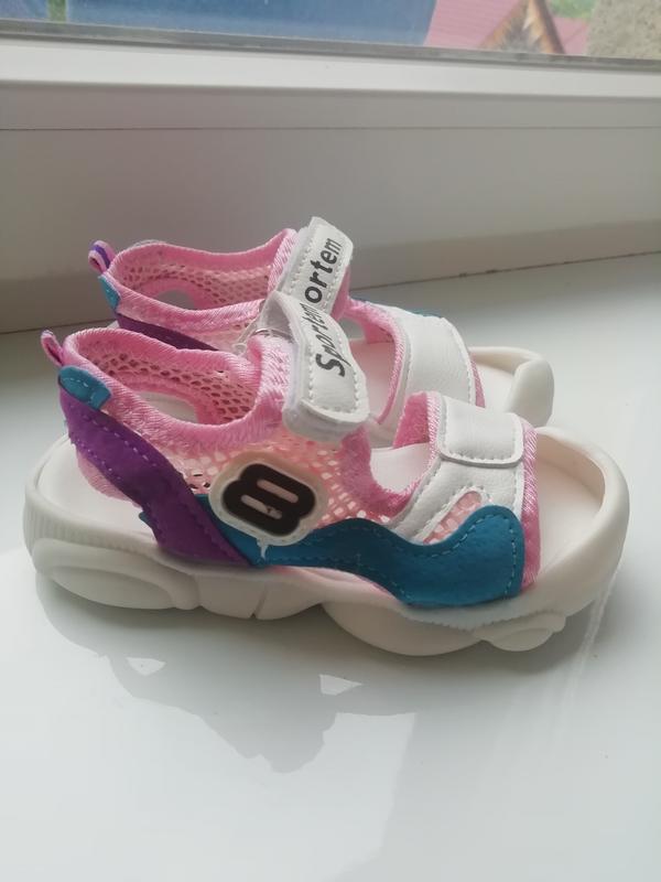 Нові босоніжки для дівчинки з захистом на пальчики. 23р - 15см З милими ведмедиками на підошві🐻