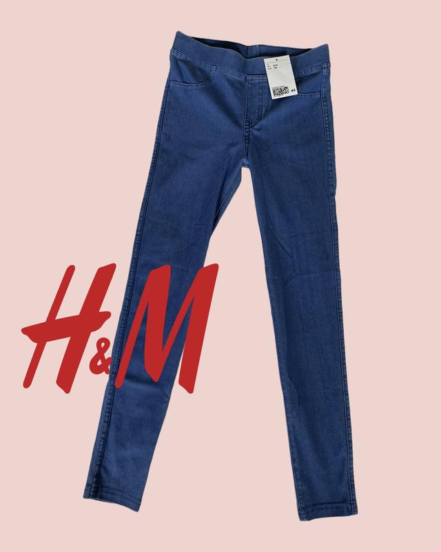 Нові з біркою. Стрейчеві, колір під джинс. На зріст 128-134см. Ззаду є кишені. Замовляла на офіційному сайті в Британії (не встигли поносити). Довжина 77см, ширина-30см.