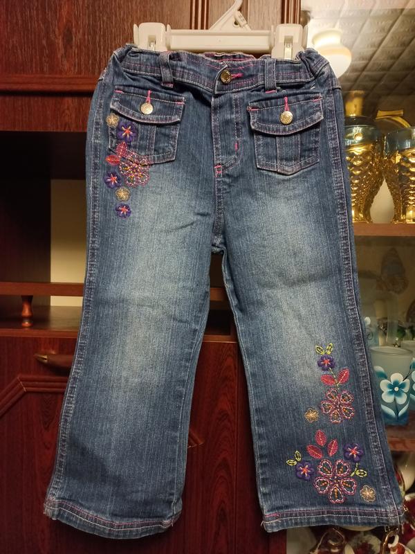 Красивые джинсы на девочку. Возраст 2,5-3 года, размер 92-98 указан, смотря какой ребёнок. Замеры: пояс резиночка сзади+внутри регулятор резиночки, посадка 21 см, шаговый 35,5 см, длина 55 см. Состояние идеальное, дефекты полностью отсутствуют. Пуговица и замок в порядке. Потёртостей нет. Красивая вышивка. Товар пересылаю Новой почтой и Укр почтой.