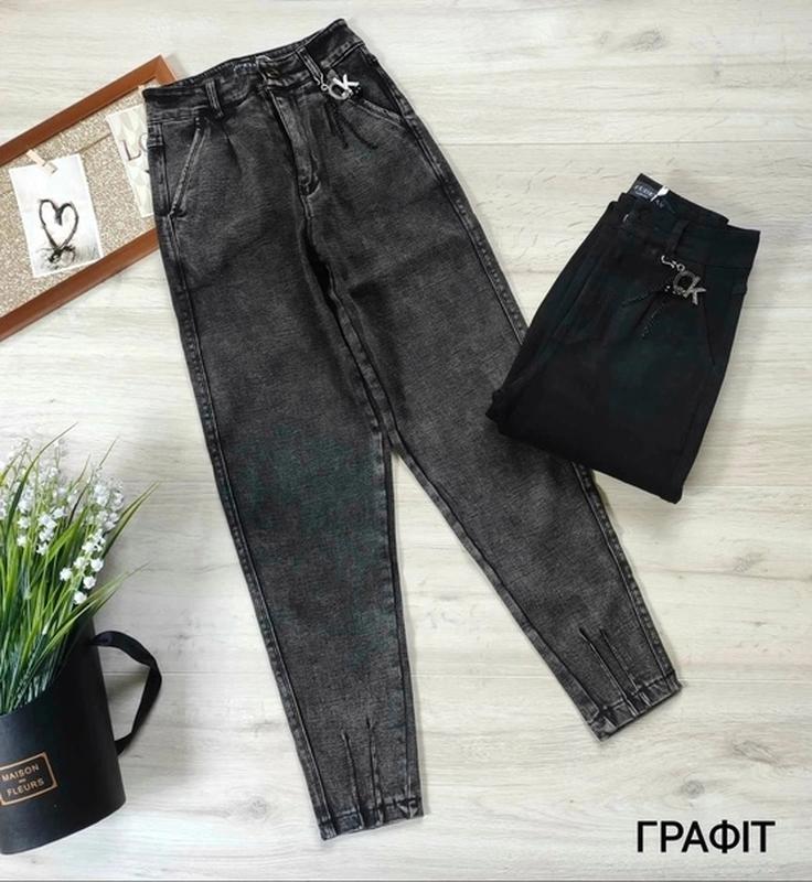 В НАЯВНОСТІ!!! Джинси МОМ , Тканина джинс на утепленні,застібаються на гудзик і блискавку, гарно тягнуться у поясі є резинка,також є діючі кишені колір темно-сірий 21(134р)(2 шт)-довжина 82,крок 58,пояс 27 22(140р)(7 шт)-довжина 83,крок 59,пояс 28 25(158р)(1 шт)-довжина 88,крок 63,пояс 30 Ціна 610грн