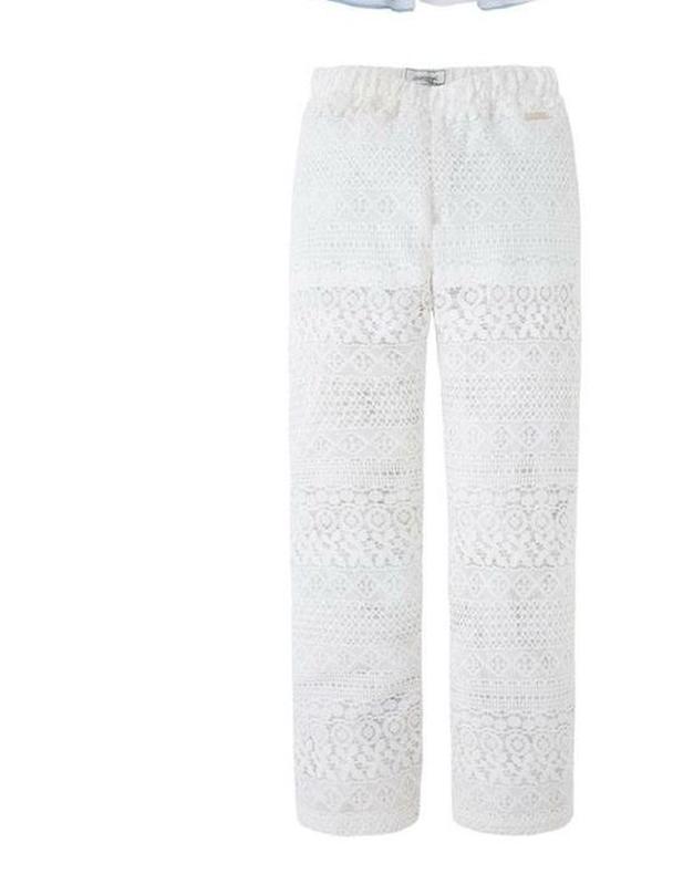 Стильні і красиві мереживні брюки для дівчинки 7-9 років, зріст 128-130см. Довжина 78, крок 56, ПОТ-ПОБІДИ 28-36. Гумка, та трикотаж потягнеться. БЕЗ ДЕФЕКТІВ!