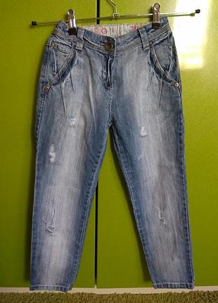 Круті рвані бойки, дуже стильно лягають, є стяжка,якісний щільний джинс. Довжина 77 см, покроковий 54 см, полупояс приблизно 28 см, підлозі ПРО 37-38 див.