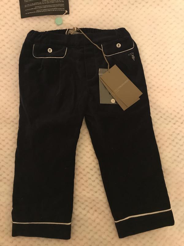 Нові брюки, купувала на yoox. Не на худеньку дівчинку. Довжина внутрішнього шва штанини 32 см, по талії 27, ззаду на поясі резинка, але не регулюється. Колір глибокий синій. На підкладці.Дуже гарні та стильні, написаний розмір 12-18 місяців, але орієнтуйтеся по замірах. Доньці вони якраз почали в 2 роки, але не по сезону.