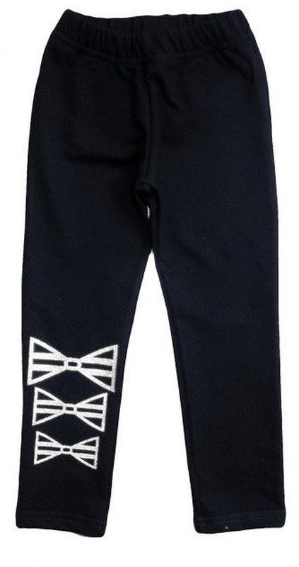 Красиві лосини для дівчинки з якісного футерного трикотажного полотна, прикрашені сріблястими бантиками. Колір: Темно-синій; Полотно: Футер без начісування (2-х нитковий); Склад: 100% бавовна; Оформлення: Пряма трансферна друк (накат); В наявності ріст 98, 104, 110