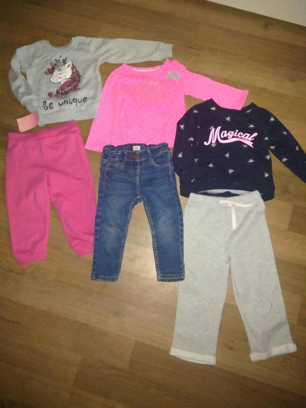 штани рожеві нові 18-24 міс -100 грн сірі нові з люрексом блищать -18-24 міс -100грн сині джинси на розмір 82-92 см -100 грн в дуже хорошому стані кофтинки сіра з паеткамі -120 грн рожева carter ' s -80грн синя світшот hm -120 грн в ідеалі мало утепленна