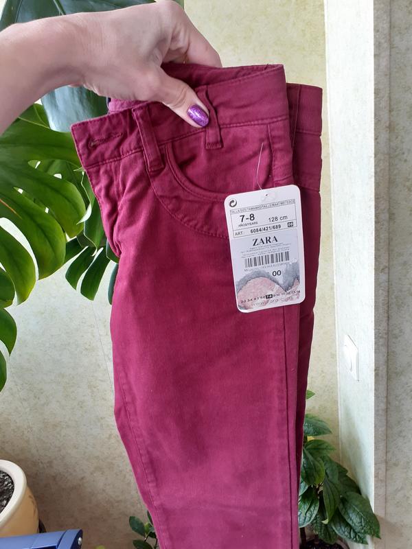 Штани для дівчинки, котон, дуже красивий колір, вишневий, фото не передає. Стан новий, оригінал. Ріст 128, вік 7-8 років. Пояс на утяжці, дуже класні.
