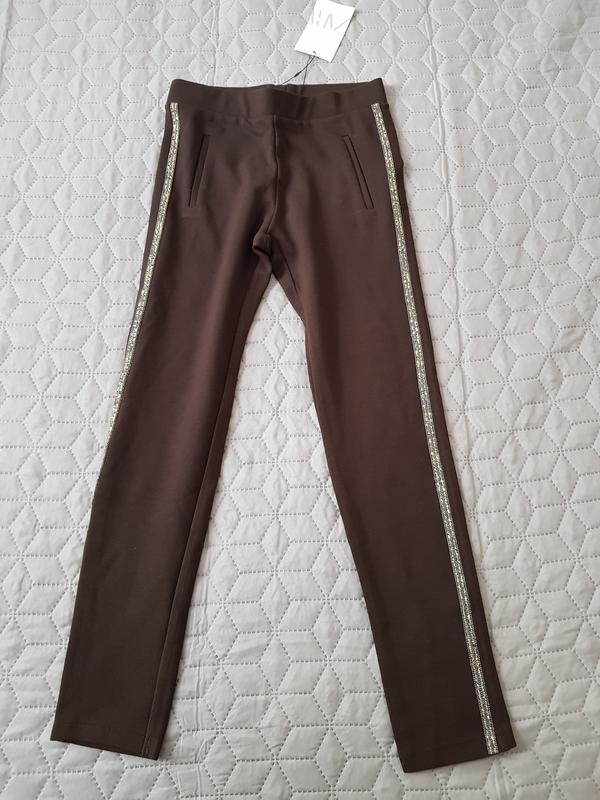 Щільний Трикотаж щільний штани Zara розмір 10-11 років 152 зростання та маломерит !!!!!!!!!!! нові з бірками колір - дуже темно-коричневий , як гіркий шоколод ВИМІРИ розміру 152 : пояс - 31-32 довжина по внутрішній стороні штанини - 61 см довжина з зовнішньої сторони з поясом разом - 78-78,5 см посадка спереду - 21,5 см посадка ззаду - 29,5 см повернення немає Дивіться, будь ласка, і інші речі та взуття для дівчинки на ріст 133-145 див. нова і злегка бу
