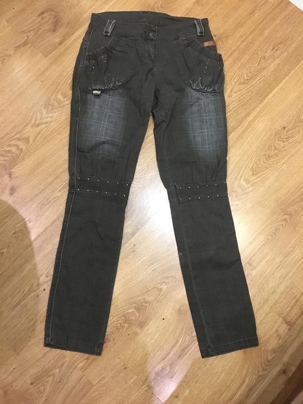 Штани коричневого кольору. На зріст 164см. Довжина штанів – 99см, напівобхват стегон – 46см.