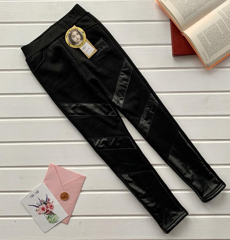 Розмір: 146 Оригінальні утеплені лосини для дівчинки, з вставками імітації відполірованою шкіри. Виріб чорного кольору повністю облягає струнку фігуру, підкреслюючи всі вигини. Спідниці пошиті з матеріалу, у складі якого присутні еко-шкіра, бавовна і еластан в оптимальній пропорції. Всередині лосини на м'якому теплому флісі.