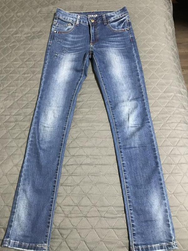 джинси на дівчинку у відмінному стані,одягали кілька разів.зростання приблизно 152-160 см,довжина 94 см,підлозі обхват талії 34 см(є стяжка)підлозі обхват стегон 38 см,посадка спереду 22 см,ззаду 31 см,ширина штанини внизу 13,5 див.
