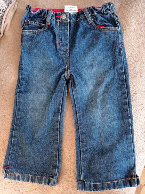 Джинси темно сині, ґудзик не розстібається, пояс регулюється внутрішньою гумкою і гудзиками.